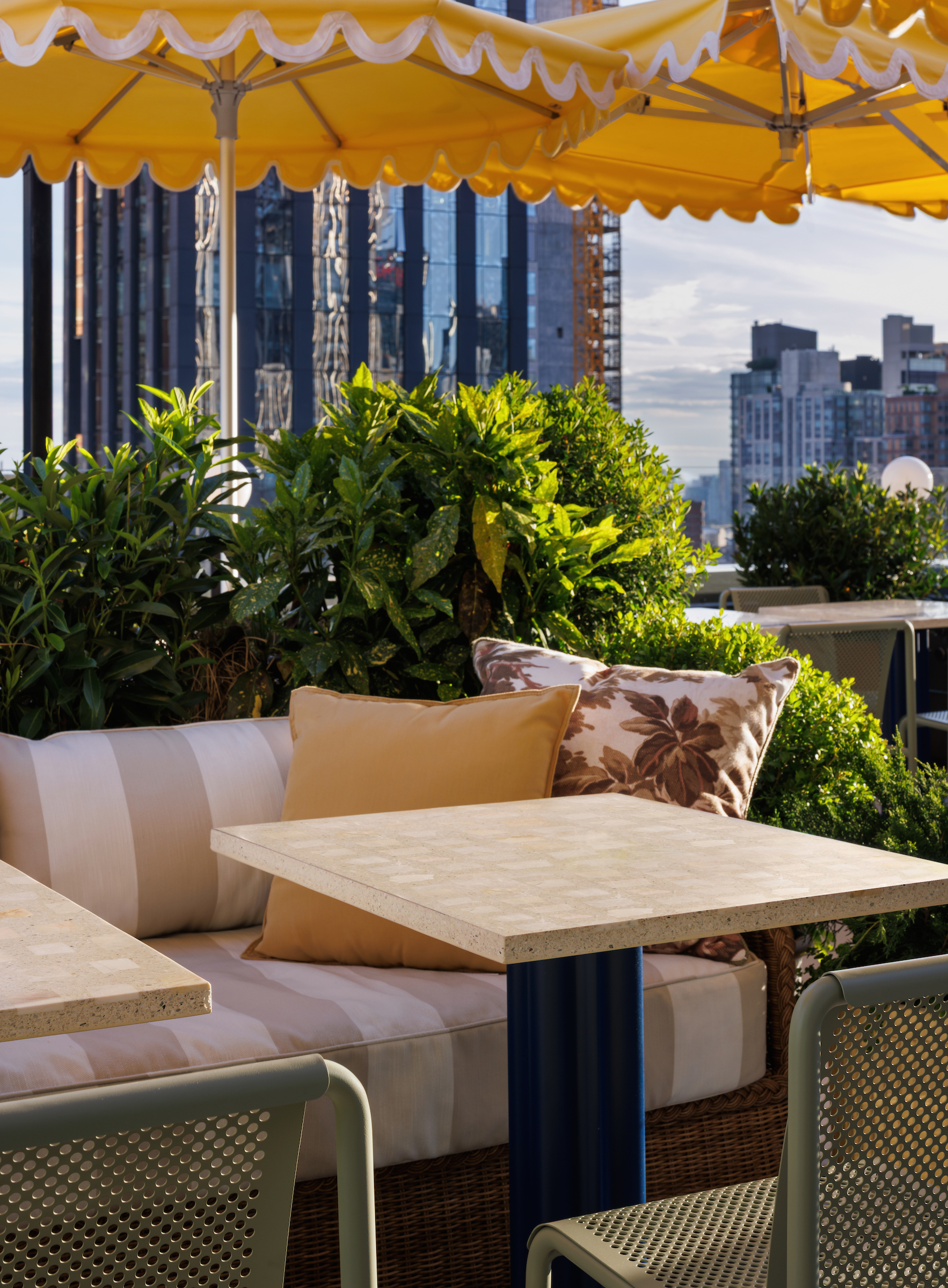 Stonehill Taylor transformed the rooftop of the Arlo NoMad Hotel into a vibrant, laid-back space, blending European café culture with New York's energy. The design features intimate seating areas with lush greenery, sculptural furnishings, and custom lighting, creating a warm and inviting atmosphere. A hand-painted mural by a local artist adds character, reinforcing the eclectic vibe of the neighborhood. The rooftop feels immersive and distinctly Arlo, perfect for relaxed conversations and cocktails.
