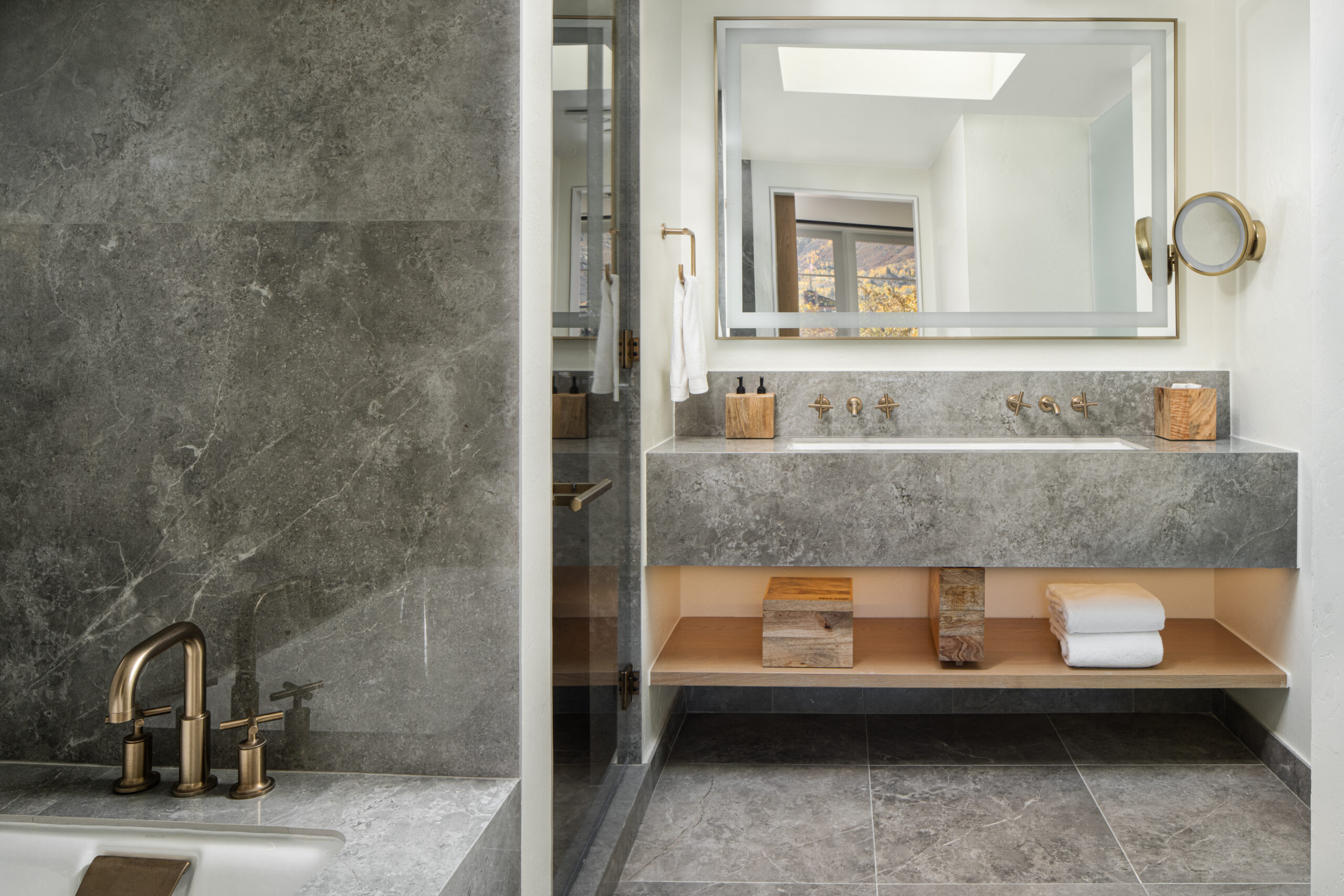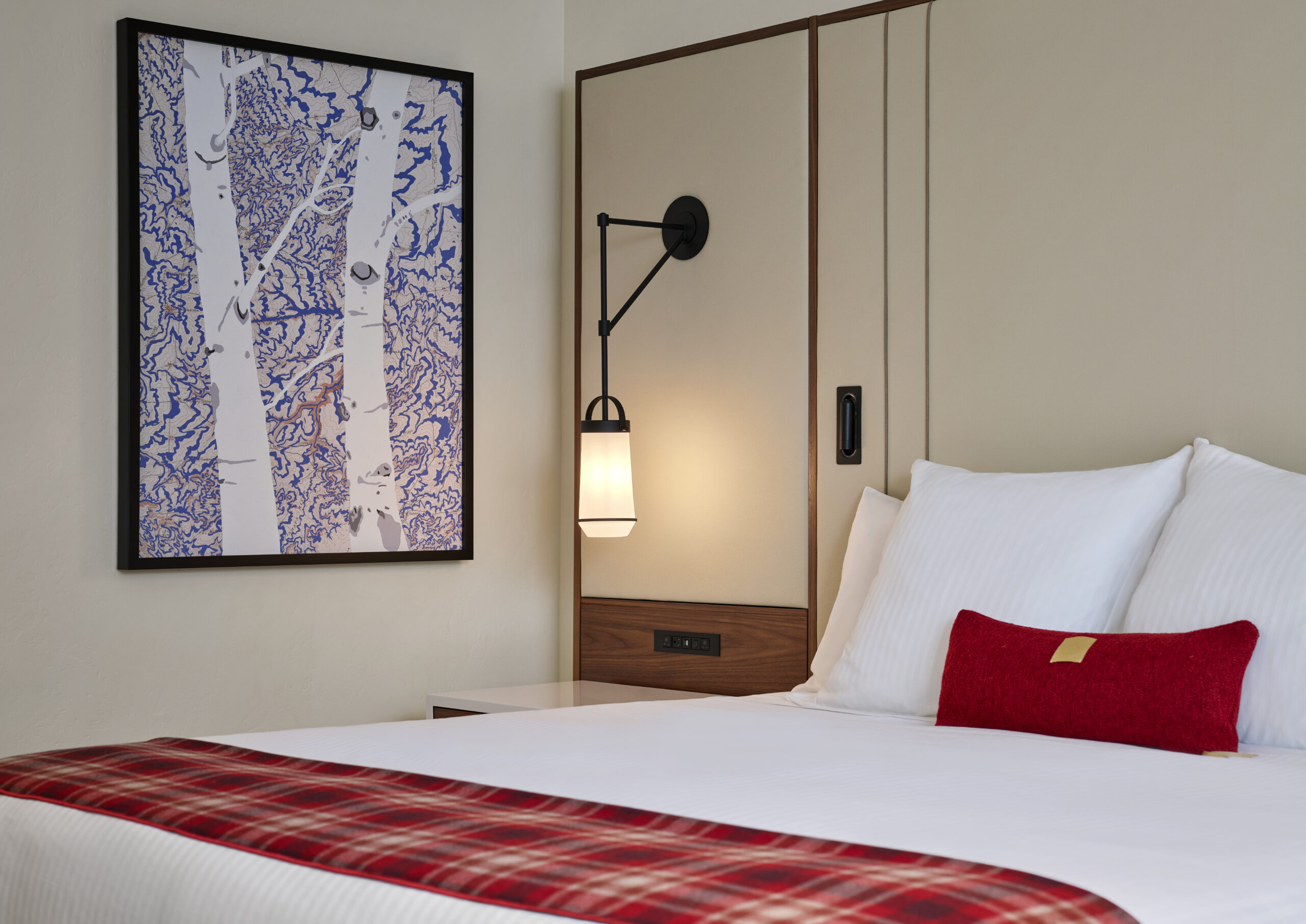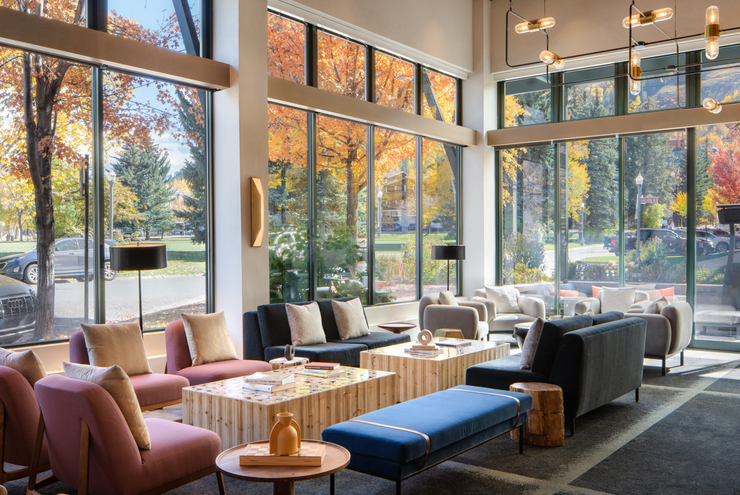 Stonehill Taylor partnered with Limelight Hotels to renovate the brand’s flagship property in the heart of downtown Aspen. The approximately 100,000square-foot project encompasses all public spaces, including the lobby, lounge, meeting rooms, pool and fitness areas, and the restaurant and bar, in addition to the 120 guest rooms and six suites. The design is a tribute to Aspen’s legacy as a place of innovation with reference to the discovery of silver and the subsequent invention of ski transportation that made silver mining the city’s main industry, putting Aspen on the map. The design also nods to the area’s natural surroundings, notably the “Silver Queen,” the appearance of a reclining woman’s profile on the Aspen mountain peak. The interiors have an industrial and modern yet playful spirit, reminiscent of an upscale chalet. The artful treatment of natural materials coupled with metallics and pops of bright color firmly grounds the resort in a contemporary aesthetic and reflects the dynamism of the mountain lifestyle.