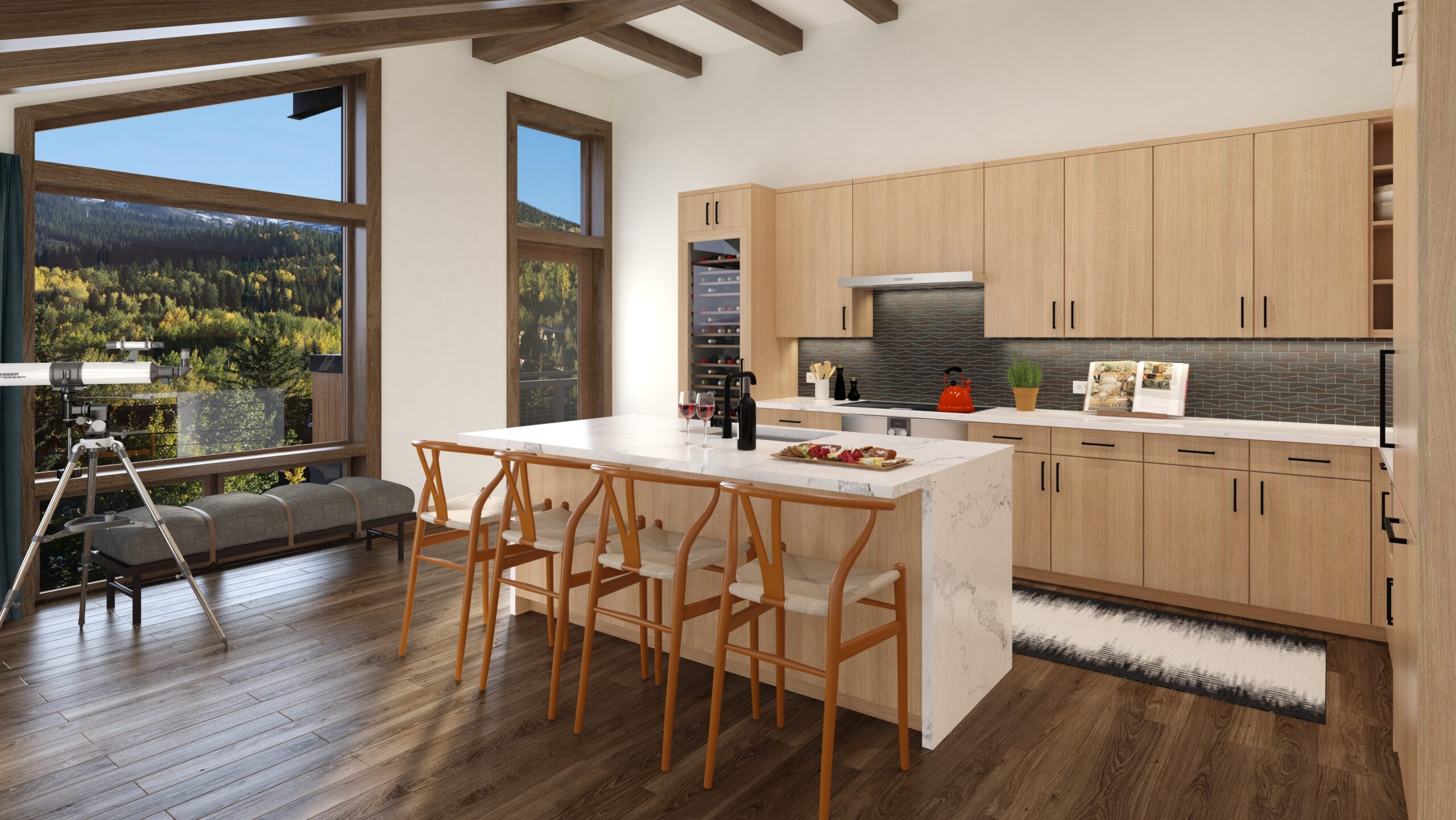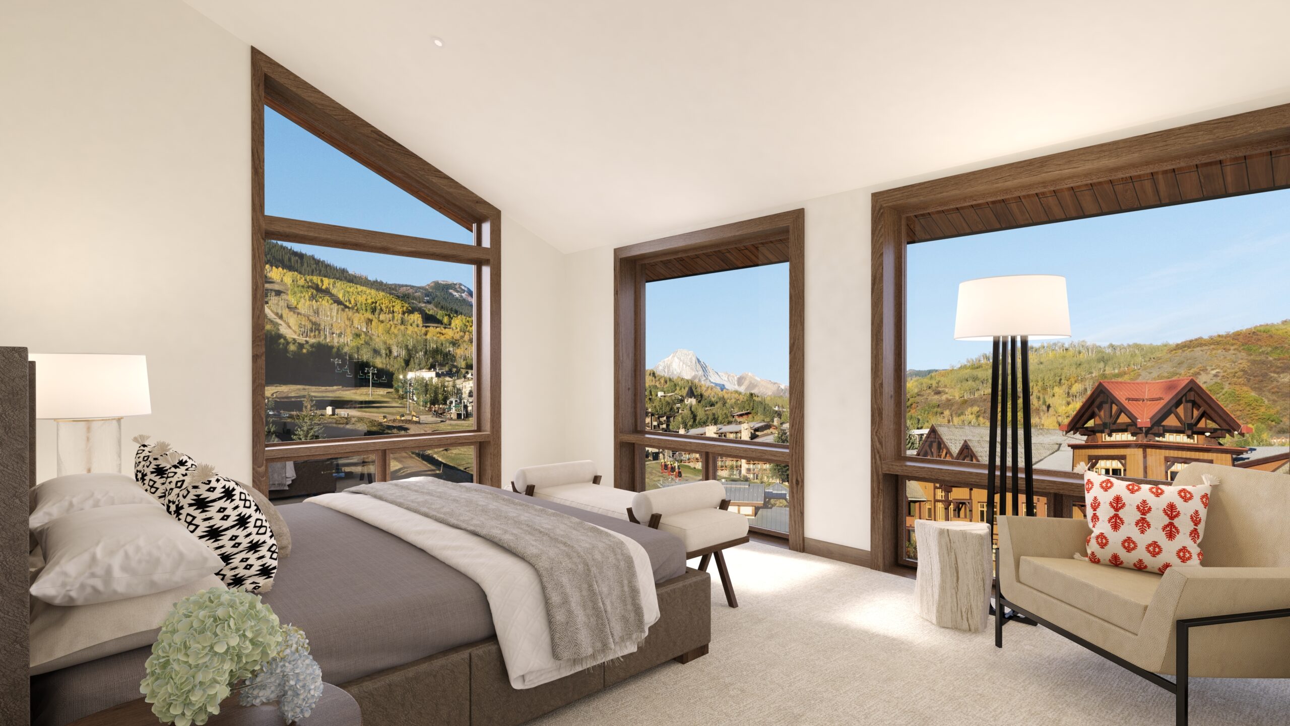 Boasting sweeping views of the surrounding mountainscape, the eleven Limelight Residences are central to the Snowmass Village community hub. Available in two-to-three-bedroom configurations, each unit utilizes an open floor plan with a great room harboring the kitchen, dining, and lounge areas complete with built-in cabinetry and a working fireplace. The cozy interior spaces are marked by cathedral ceilings and hardwood floors and a spacious seating area perfect for relaxing or entertaining groups.