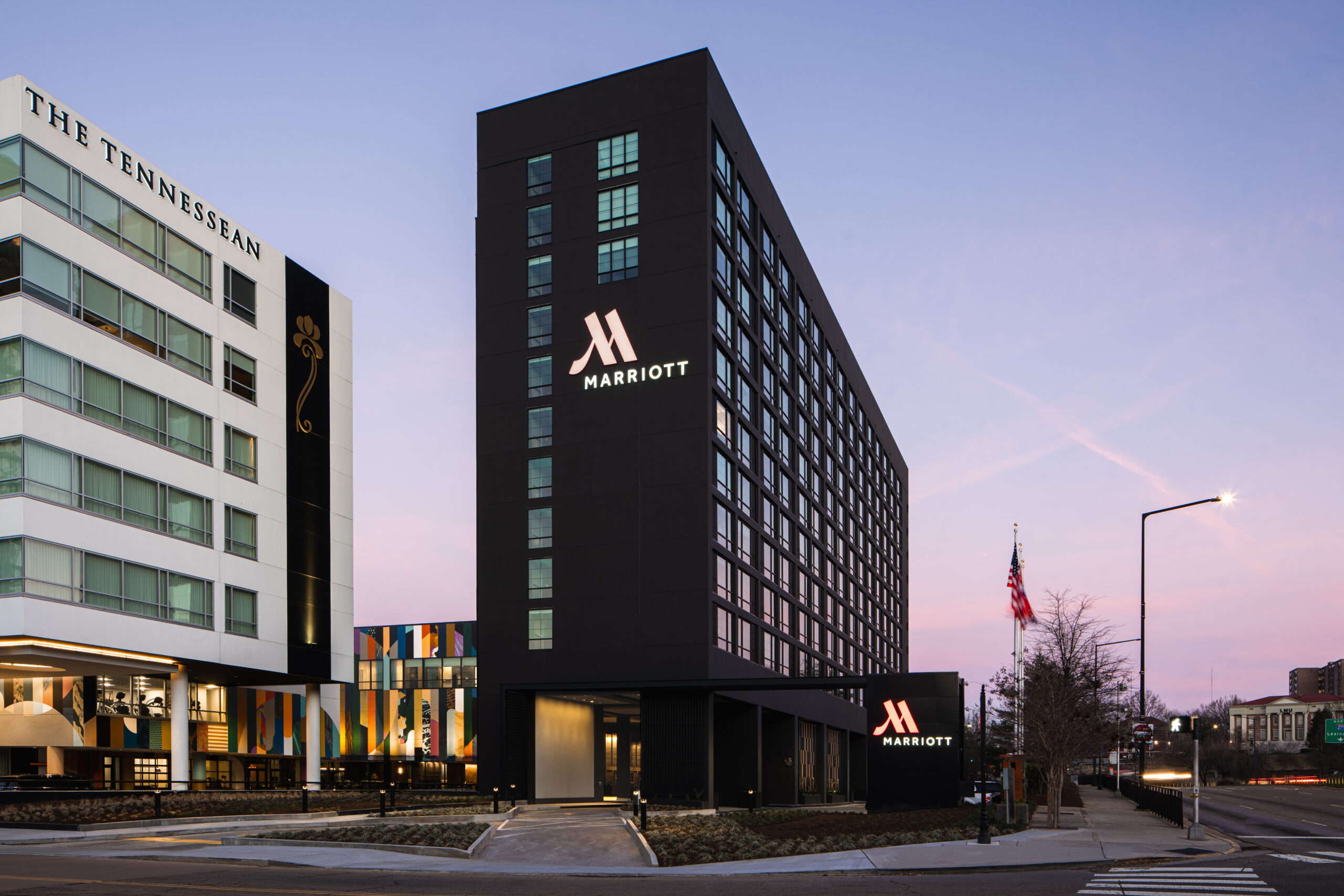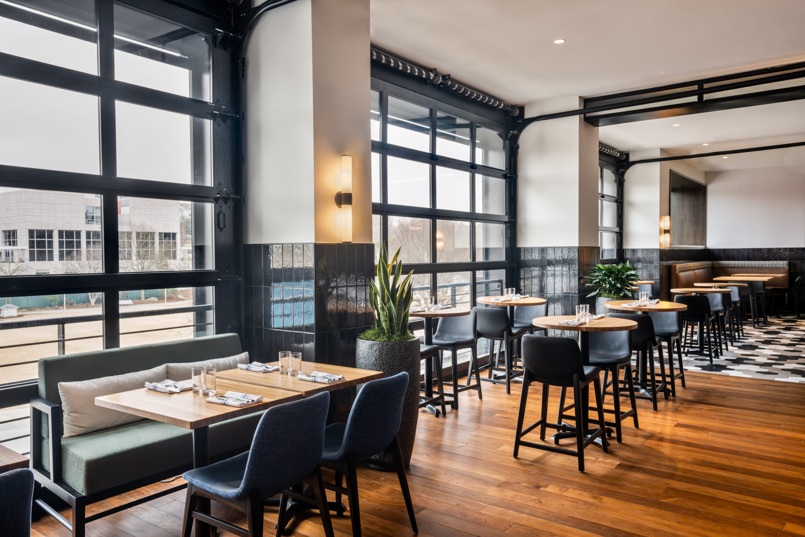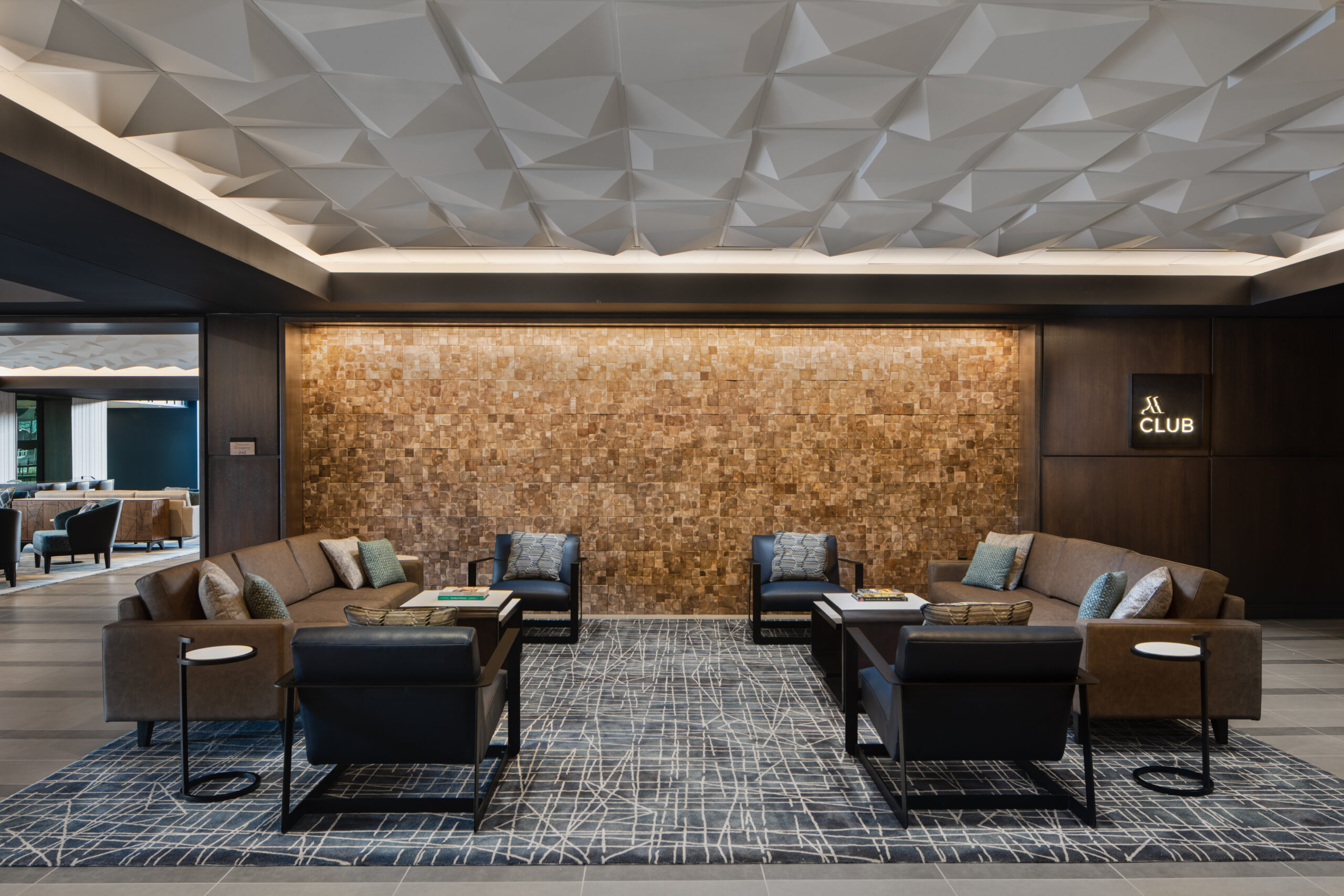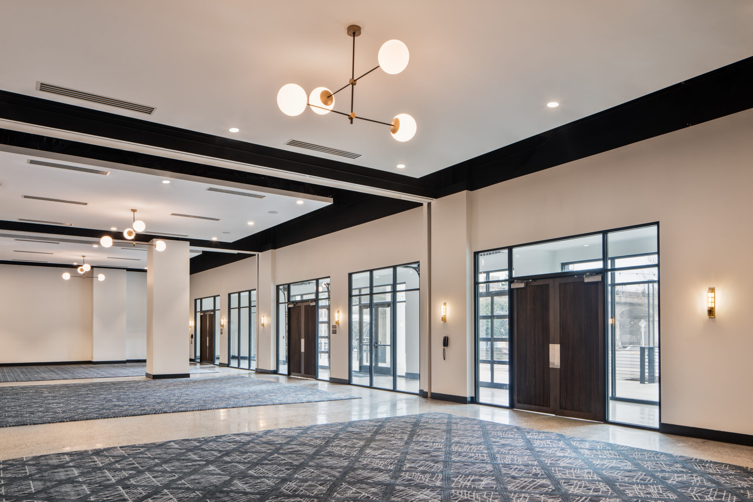 Adjacent to the 1982 World’s Fair’s gleaming Sunsphere beacon, the 300+ room Marriott in Downtown Knoxville brings renewed verve to the city. Stonehill Taylor’s makeover of the property included a newly painted exterior with accents of colorful murals, updated guestrooms, and the design of the new Maker Exchange, a 12,000-square-footgathering space. Connected to the Maker Exchange is over 13,000-square-feet of event space.