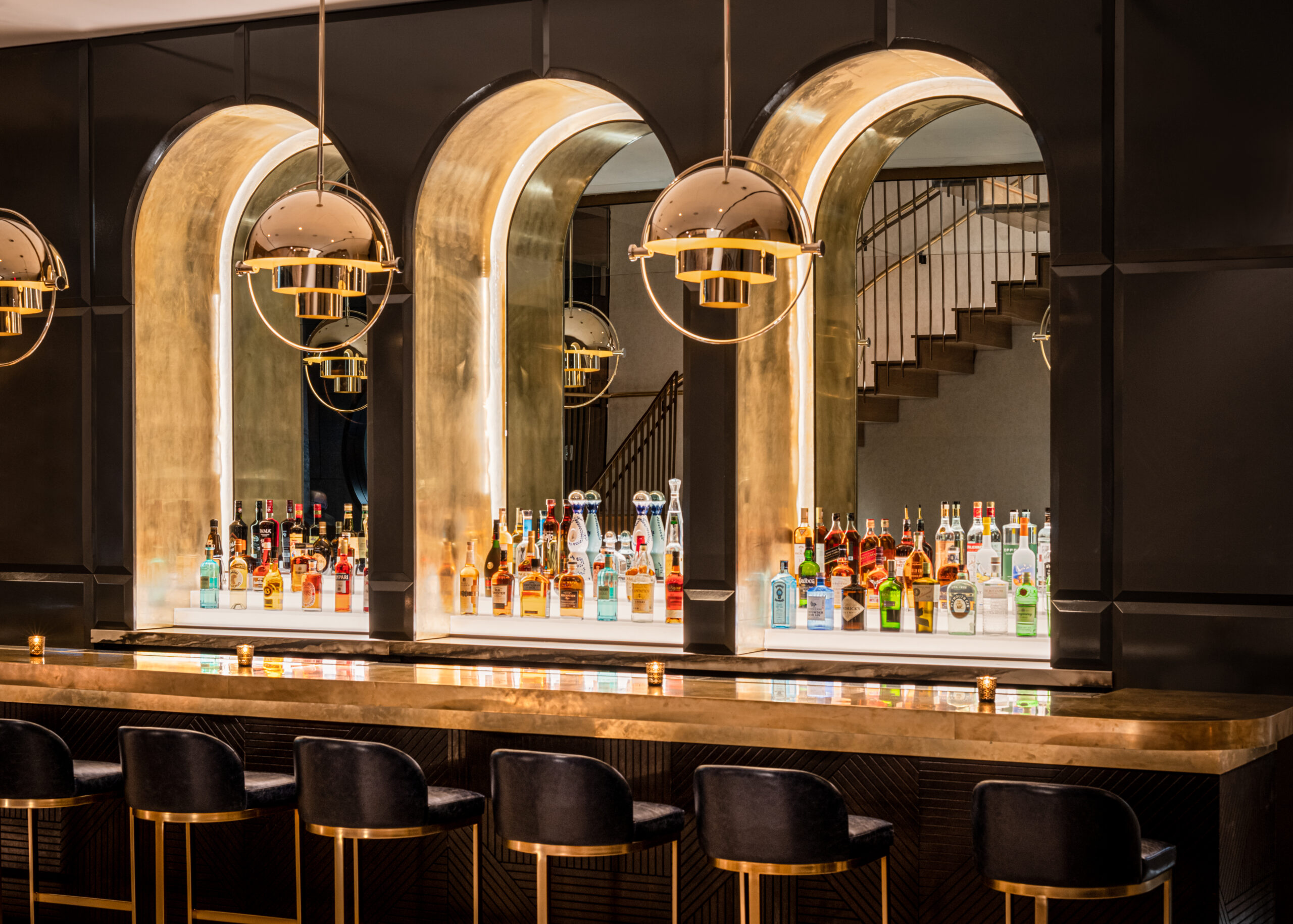As one of the first of Hilton’s new Motto brand properties to open, this 42-story, 374 key micro room hotel sets the standard for those to come. Inspired by the building’s location on 24th Street, the “24” design concept is highlighted by three unique concept pillars. The first, the 24 hours in a day, takes inspiration from the passage of time, the sun, the moon and the contrast of light to dark. The second “24ism” references metals, in particular 24-karat gold and chromium, the 24th element on the periodic table. For the third concept, the designers looked to 24-bit color, a means to produce color digitally in its truest form, which resulted in concentrated moments of vibrant jewel tones carefully curated throughout the hotel. The Architectural stand out is the entire frontage devoted to a glass-covered plaza accented by an array of brilliant white steel columns and beams spanning the plaza’s entire 75-foot width. The plaza’s black stone paving and east wall contrast with its white beams and columns, entwined in creating a yin/yang relationship. A 32-foot marquee cantilevered over the sidewalk announces the hotel’s presence and leads to the striking “Motto green” entry doors.