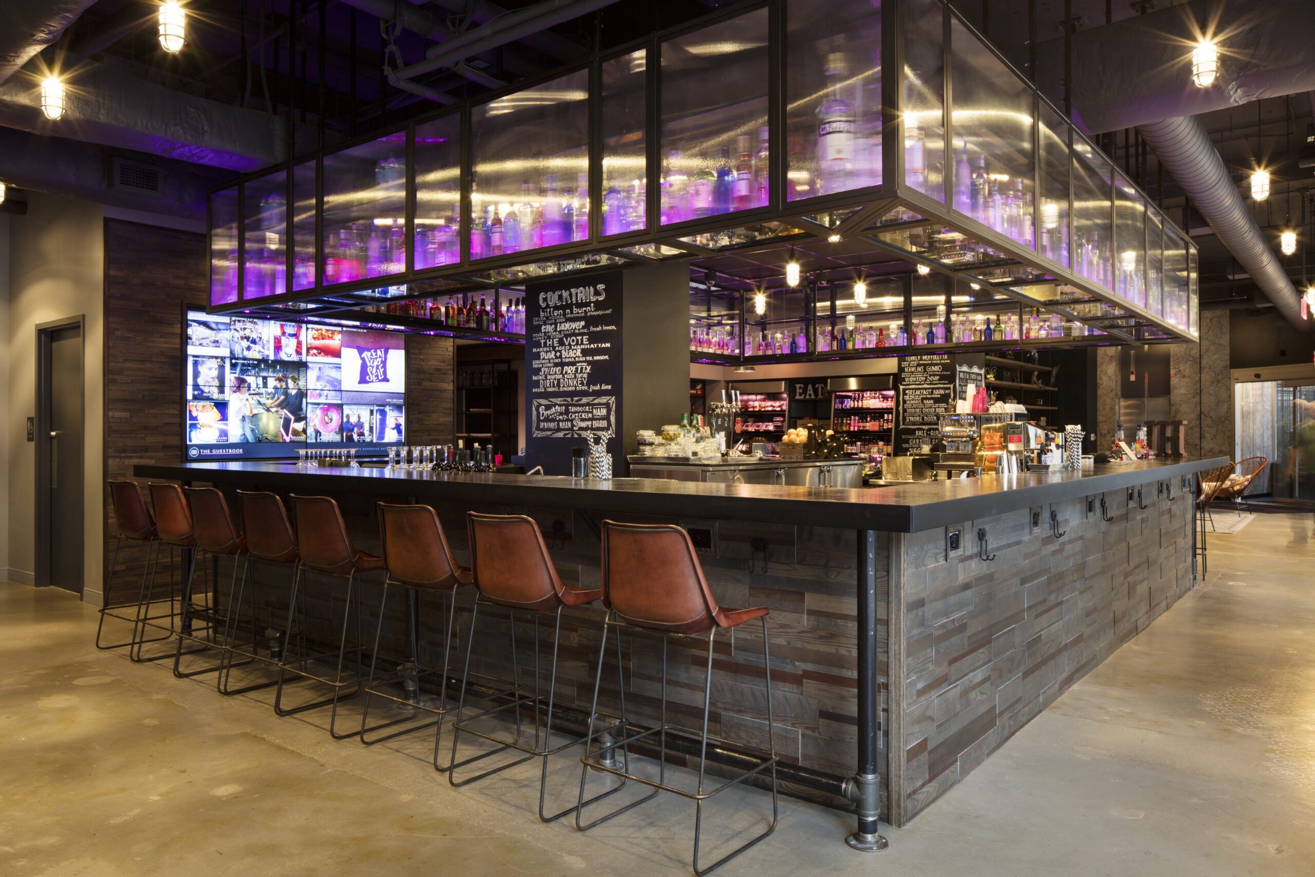 The Moxy New Orleans Downtown, one of the first Marriott Moxy hotels in the US, serves as a template for those to come with a focus on creating an engaging experience with millennial travelers without sacrificing style or innovation. Stonehill Taylor’s approach was to infuse a youthful design with modern art, contemporary technology, and local influences, thereby creating a uniquely New Orleans experience while also delivering on Moxy’s mission.