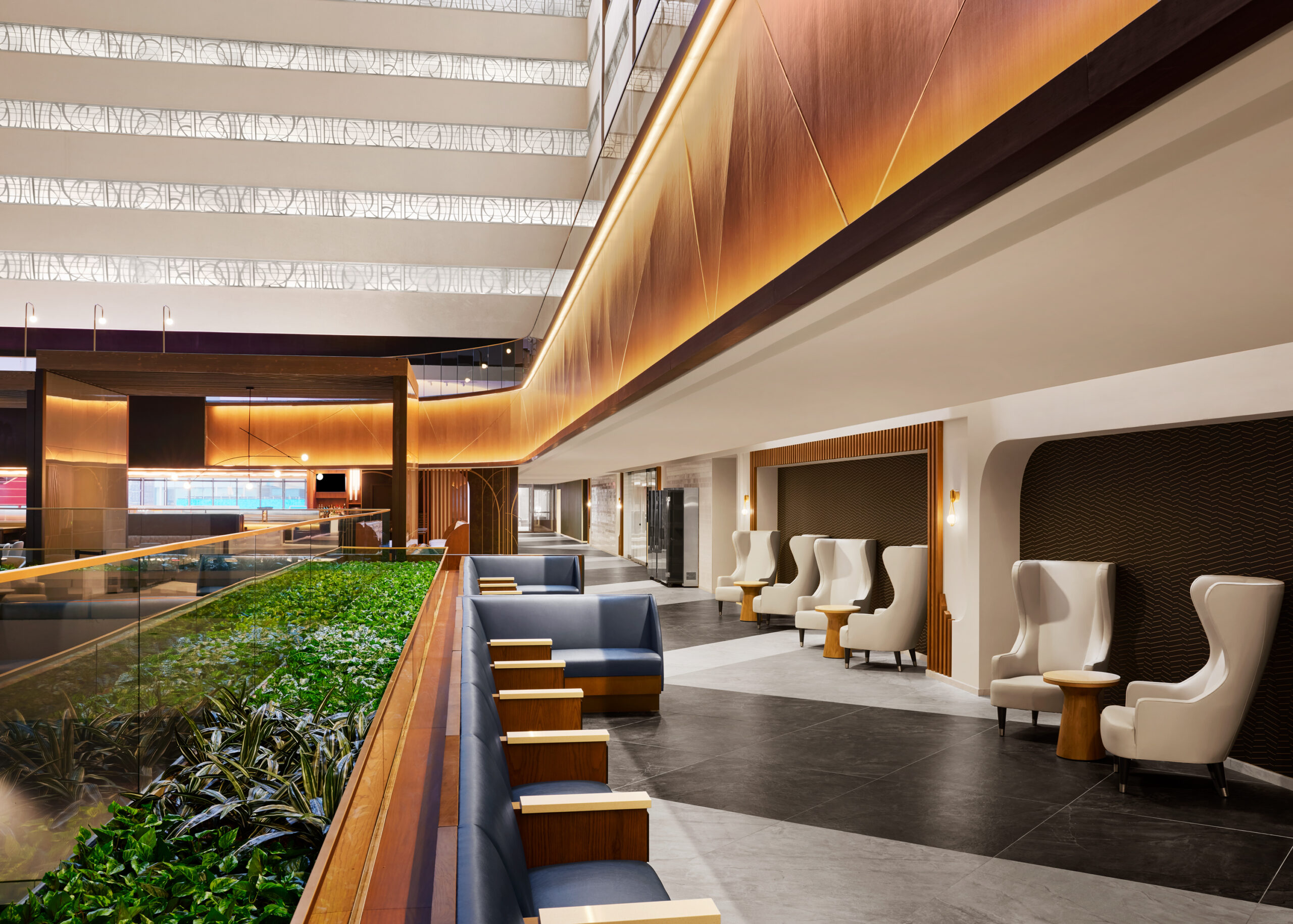 Of note, the architectural team relocated the reception, expanded the 9th floor bridge for additional event space, added a new bar underneath, and created a new concierge lounge called the M Club.