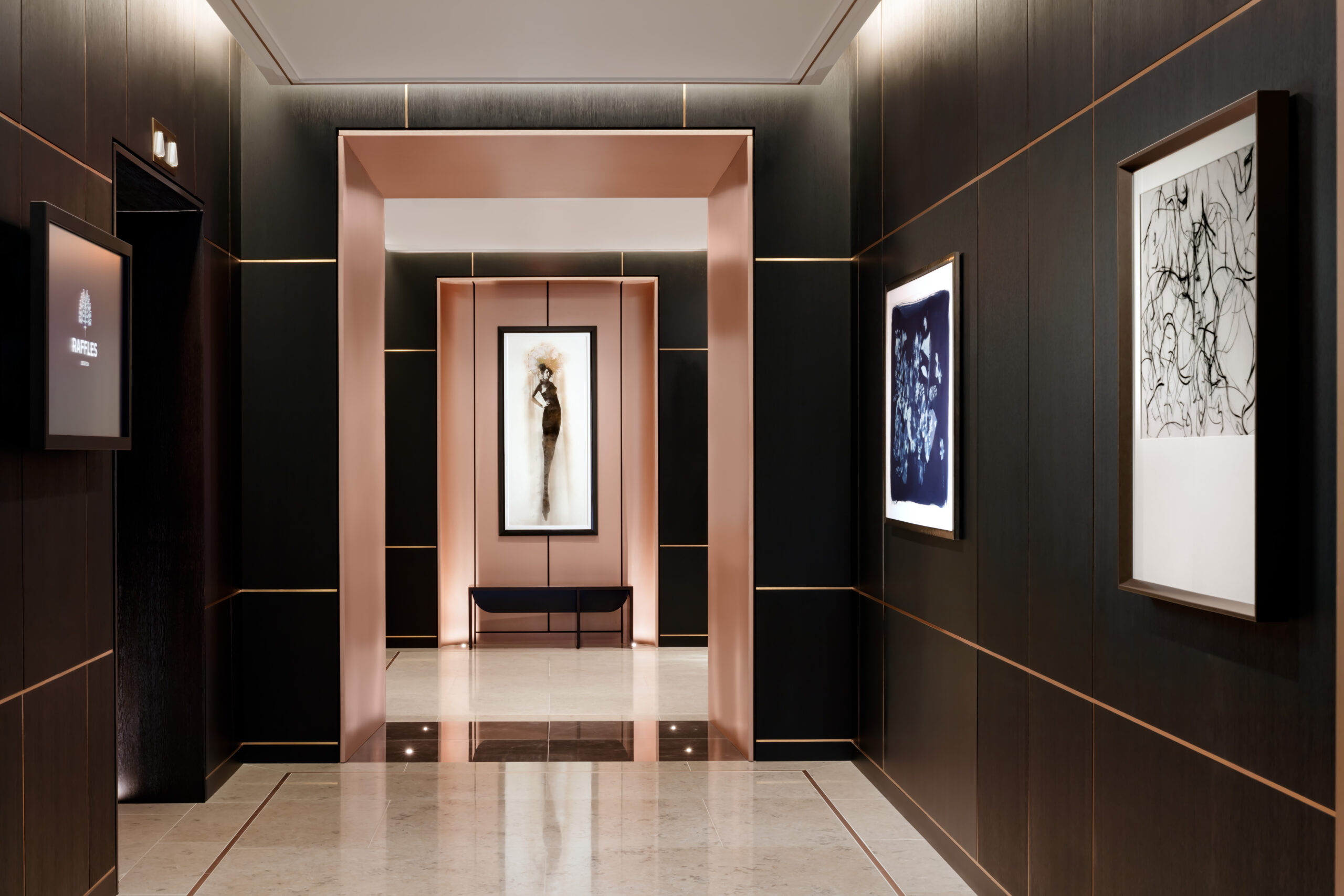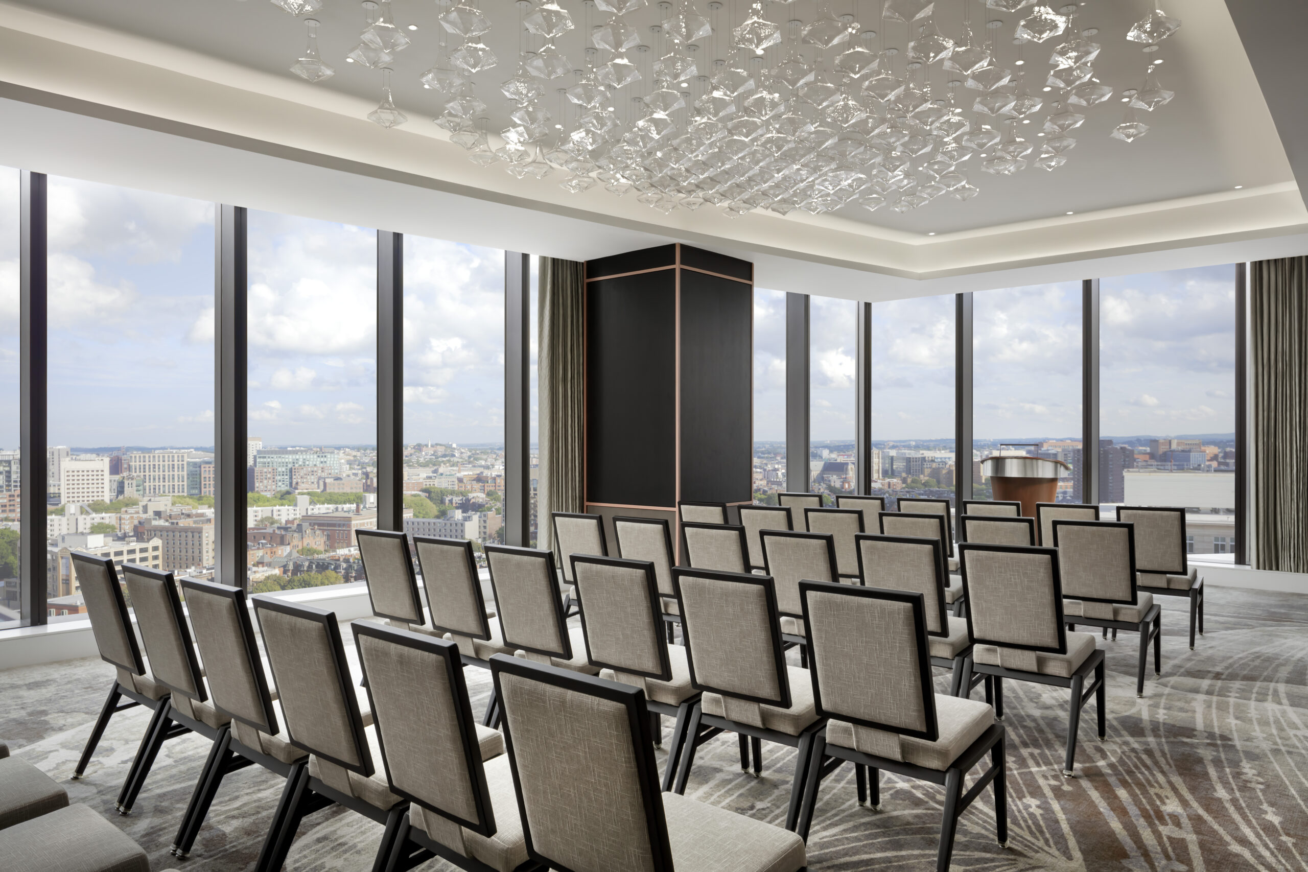 The mixed-use Raffles Boston Back Bay Hotel & Residences is the first Raffles property in North America. The 33-story, $400 million+ project includes an exciting combination of signature hotel services, including elegant and lively public spaces, distinct food and beverage venues, a two-story sky lobby perched high above Copley Square, a stunning rooftop garden terrace and lounge, and expansive meeting and pre-function spaces. The 147 guestrooms, encompassing 29 suites and a presidential “Midnight” suite represent an overarching eclecticism found throughout the Raffles hotel brand.
