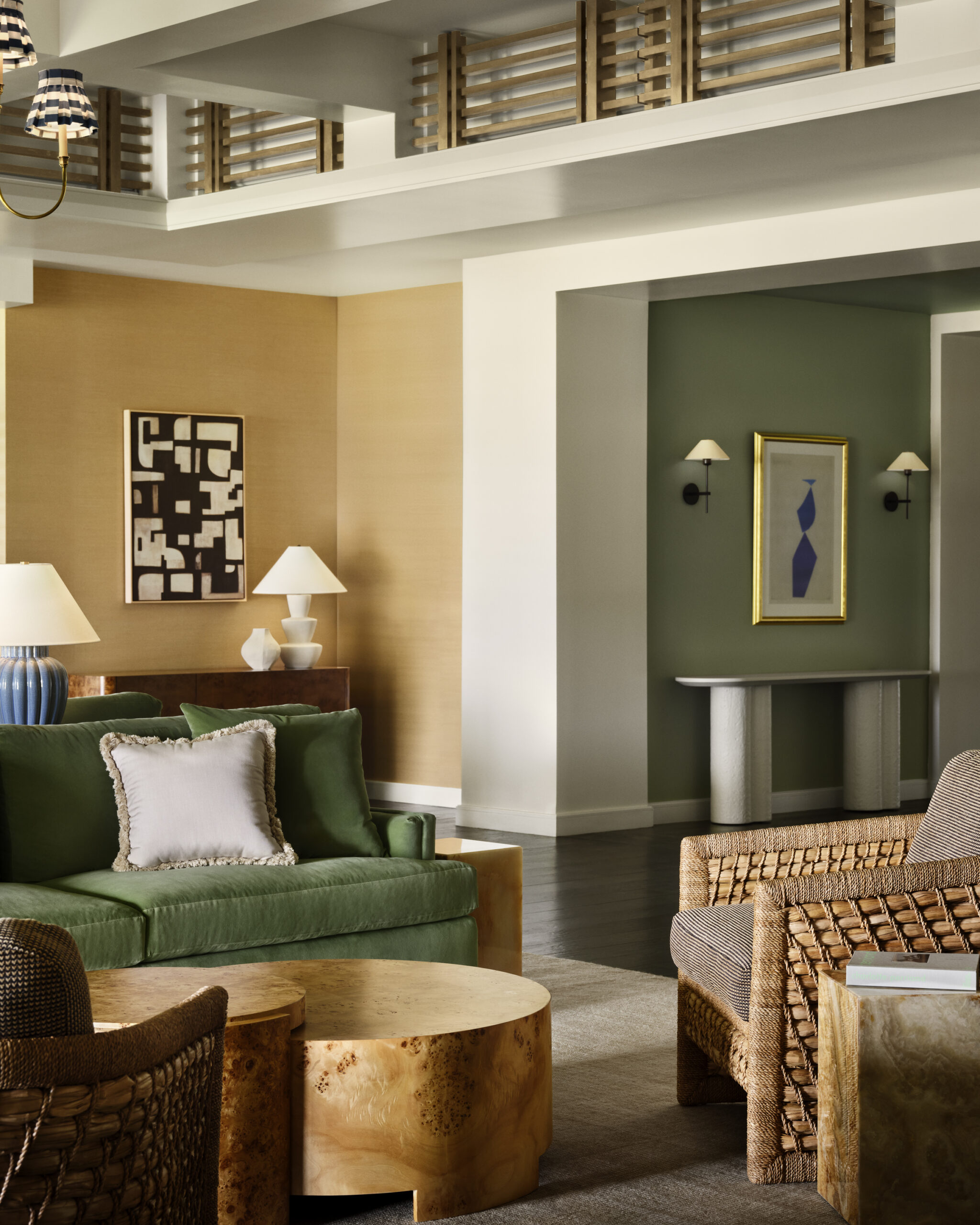 In redesigning The Seagate’s Clubhouse, Stonehill Taylor embraced the timeless allure of the 1970s Palm Beach aristocratic era, accentuated by the carefully curated art selection and tropical-inspired accents. The Clubhouse includes amenities such as a dining room, ballroom, meeting rooms, outdoor patio, tennis and pickleball courts, gym and an 18-hole golf course. Stonehill Taylor meticulously curated an interior refresh that pays homage to the 1970s glamor of the greater Palm Beach area and iconic Hollywood Regency style. From the moment members step foot into the Club, they are enveloped in a world where tropical opulence meets Art Deco sophistication.